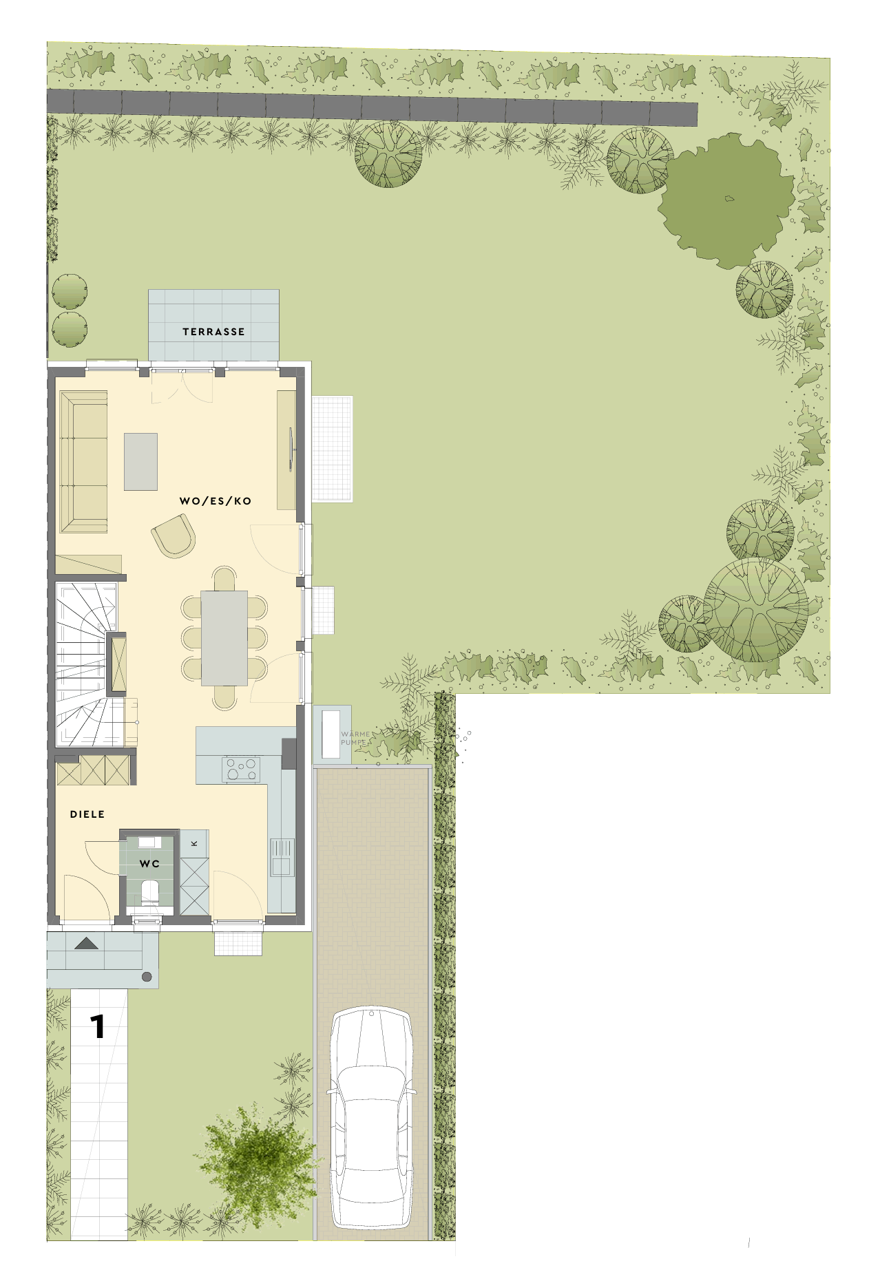 | Außenstellplatz mit Vorplatz (Haus 1, 6) | 12.000 € | -- | ||