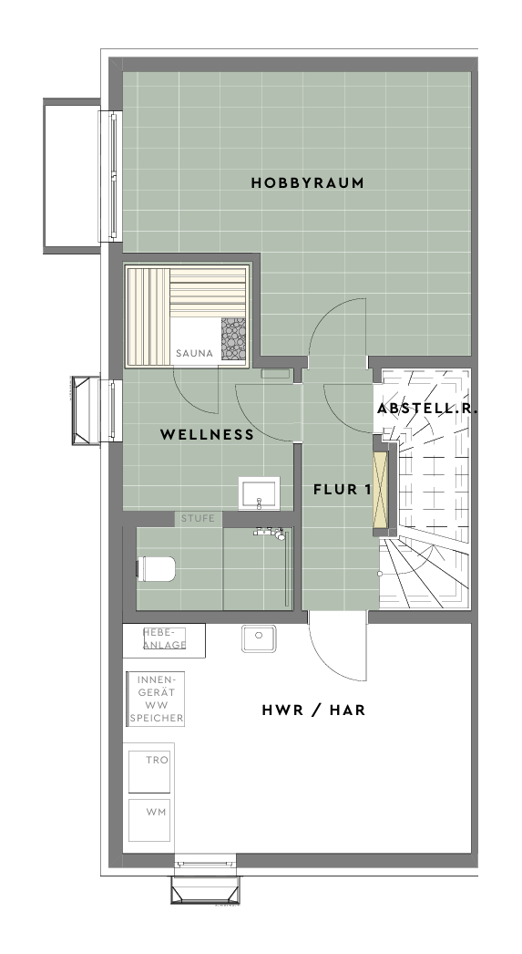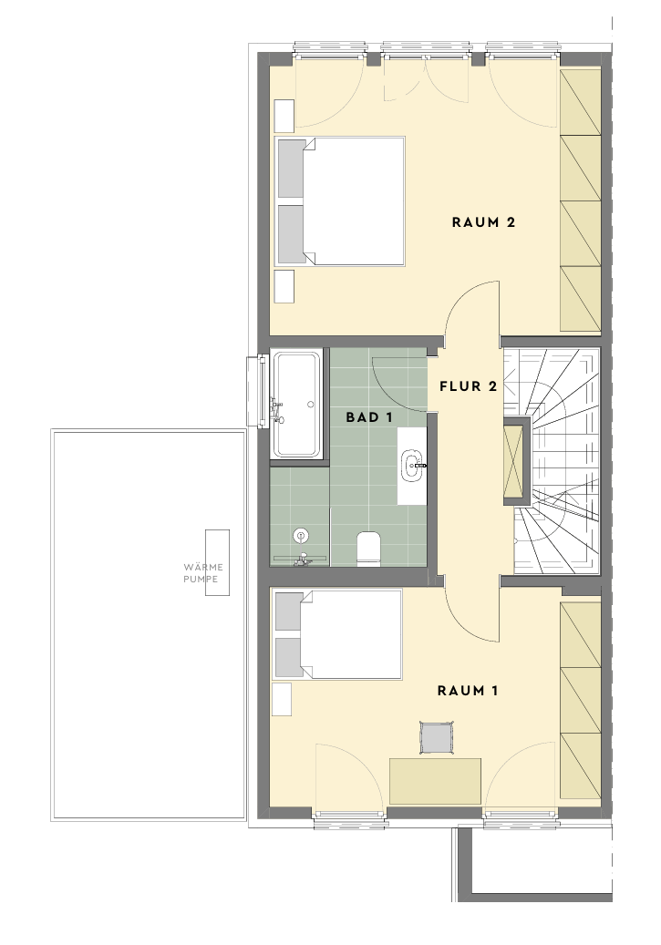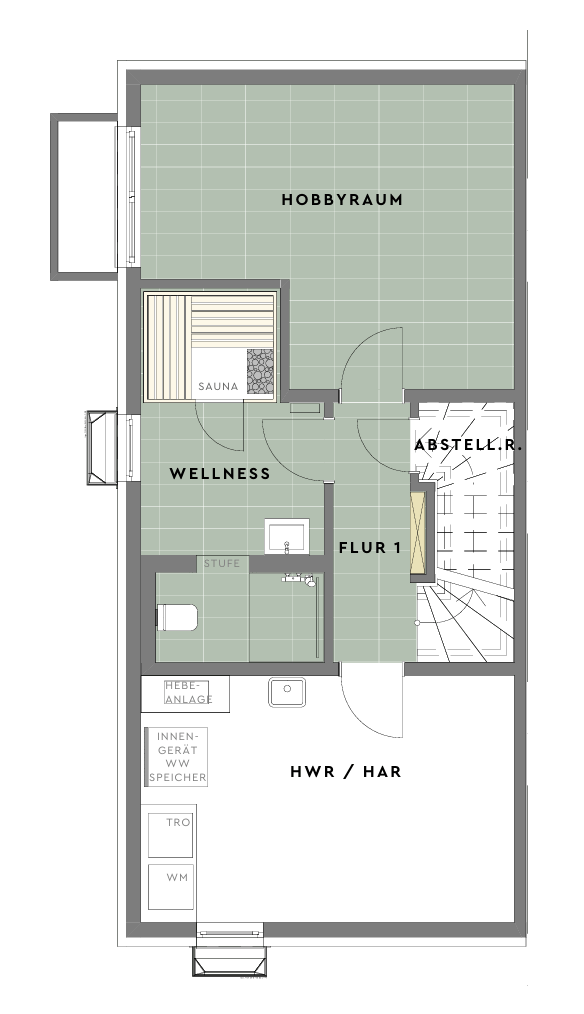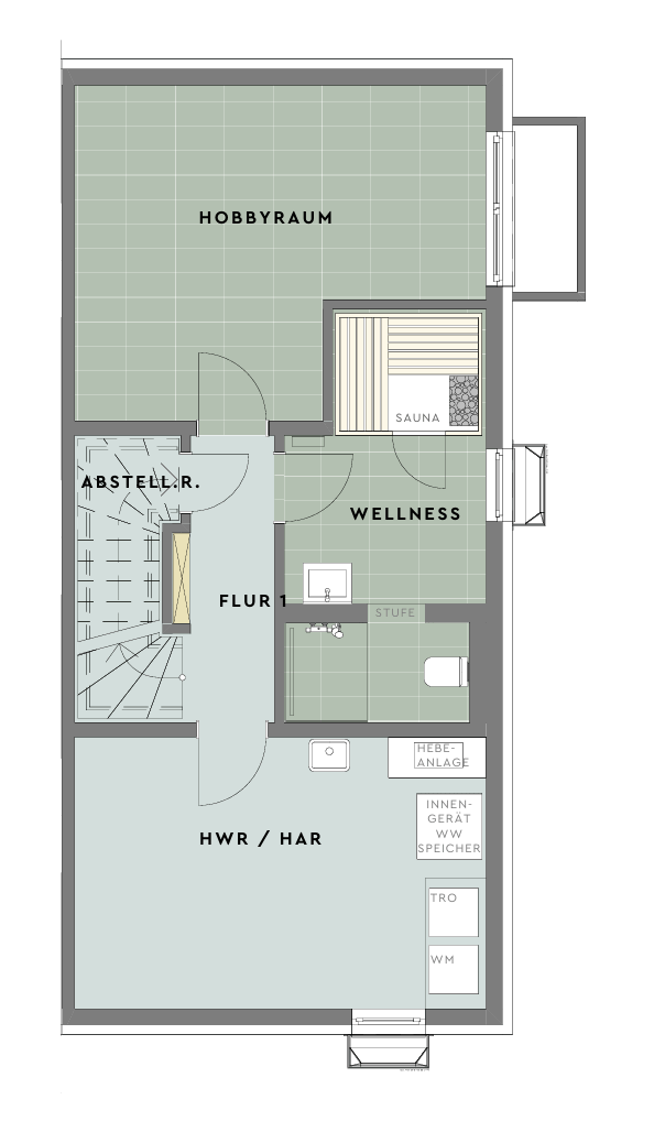 Gesamtfläche gemäß Wohnflächenverordnung (WoflV) inkl. Nutzfläche; alle Werte ca.-Angaben. Der Hauspreis ist ein Festpreis. Er beinhaltet das schlüsselfertige Haus einschließlich Grundstück, erstmalige Erschließungs- und Anschlusskosten für Wasser, Kanal, Glasfaserinternet und Strom.